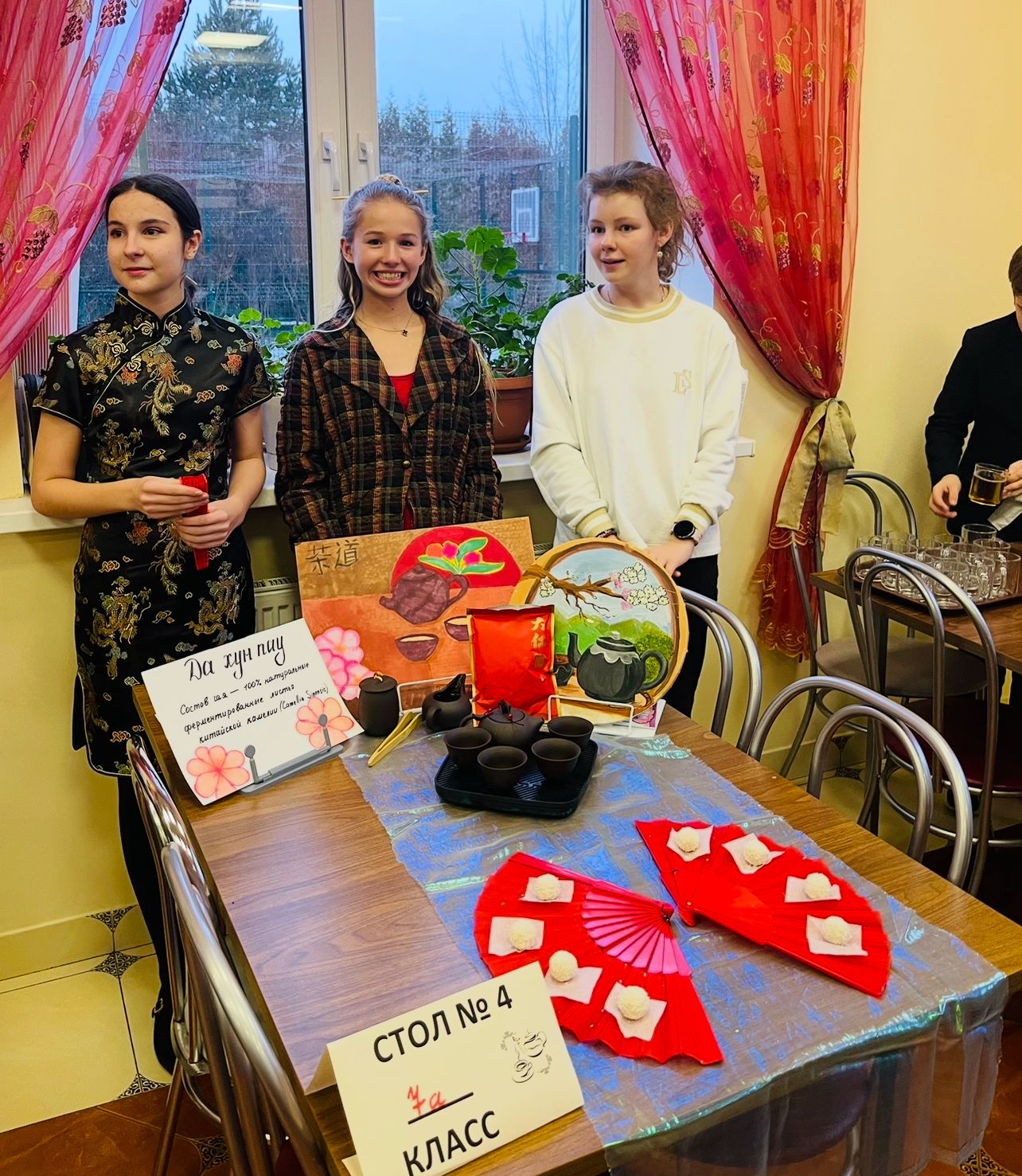 Например, ребята из 7-Б класса рассказывали о целительных свойствах яблочного чая. А учащиеся 5-Б класса, раскрыли секрет пользы крымского чая. Также ребята 7-А и 5-А классов, представили традиционные китайские сорта чая. Девочки 7-А познакомили посетителей с легендой появления Красного китайского чая. Важно отметить, что легенда о чае была рассказана на китайском языке.
